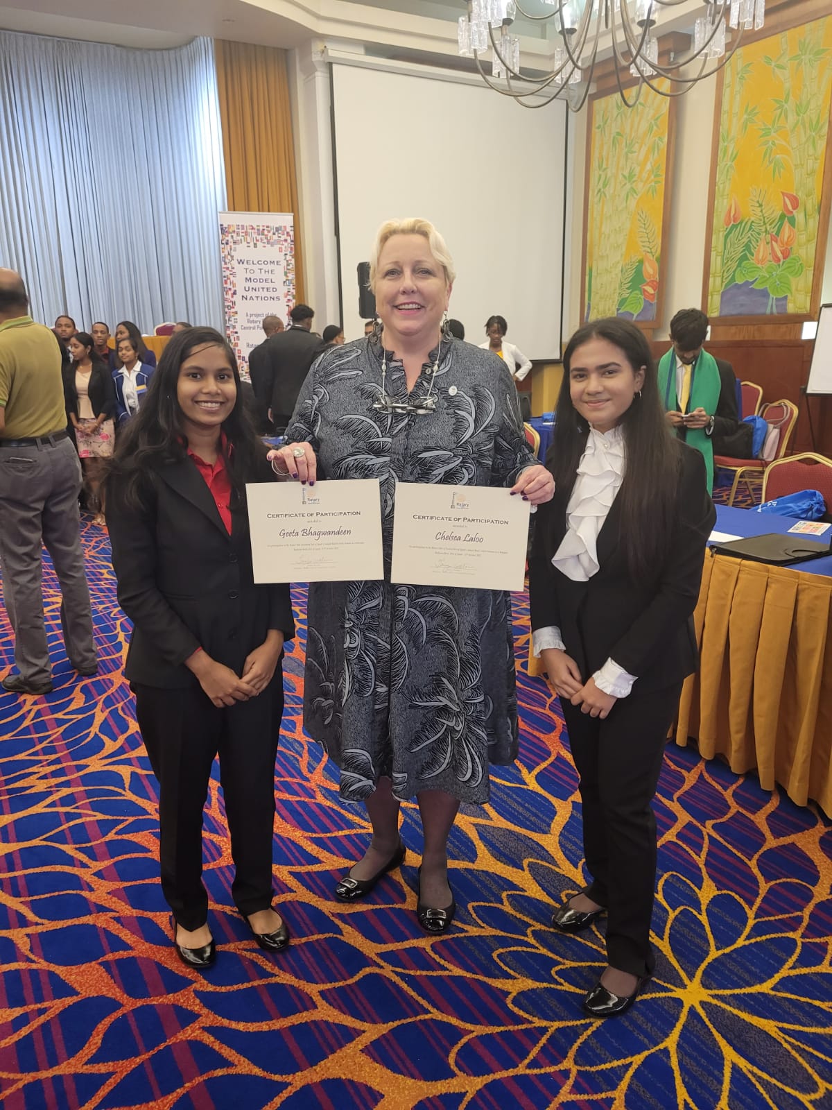 Two of our students. Chelsea Laloo and Geeta Bhagwandeen both participated in the Rotary Club’s Model United Nation Debate on Wednesday 19th October 2022.